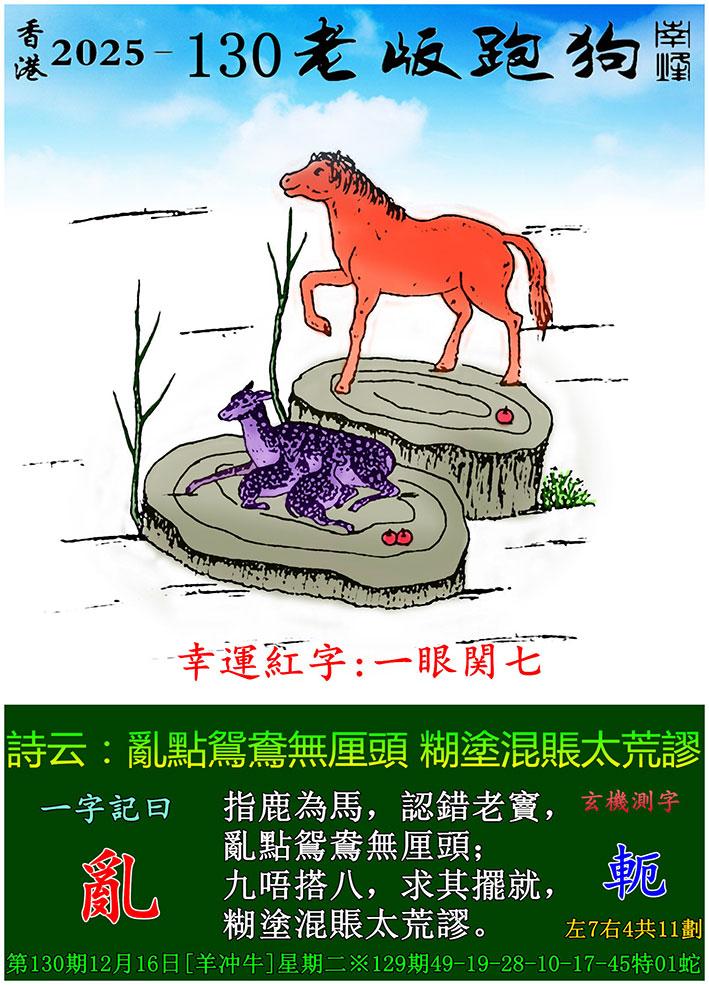 130期老版跑狗一字記之曰:【亂】 詩雲:亂點鴛鴦無厘頭,糊塗混賬太荒謬。
