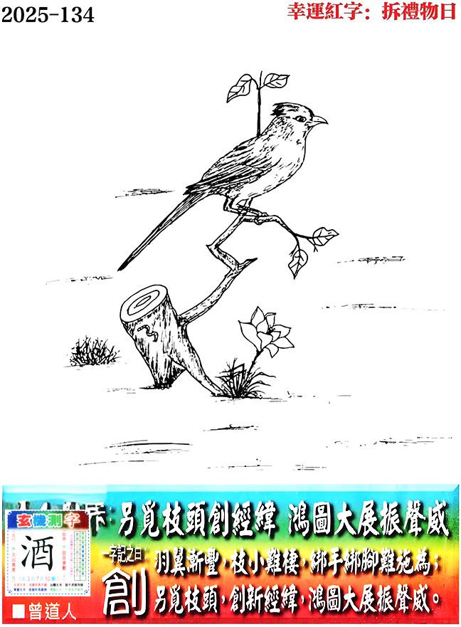 134期老版跑狗一字記之曰:【創】 詩雲:另覓枝頭創經緯,鴻圖大展振聲威。