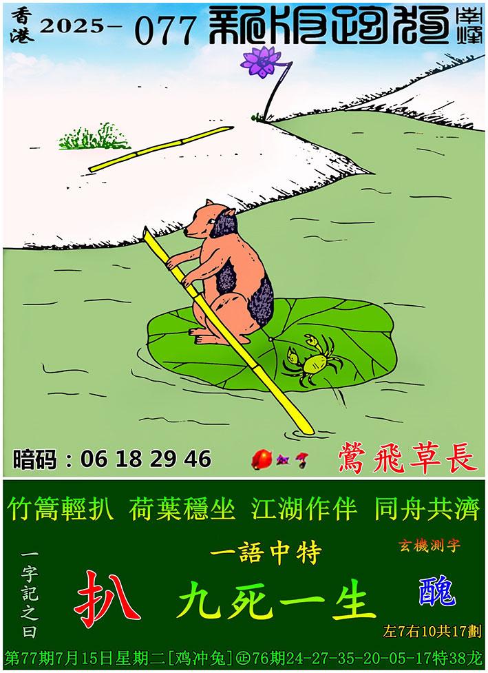 077期新版跑狗一字記之曰:【扒】 玄機測字:《醜》 一語中特:九死一生